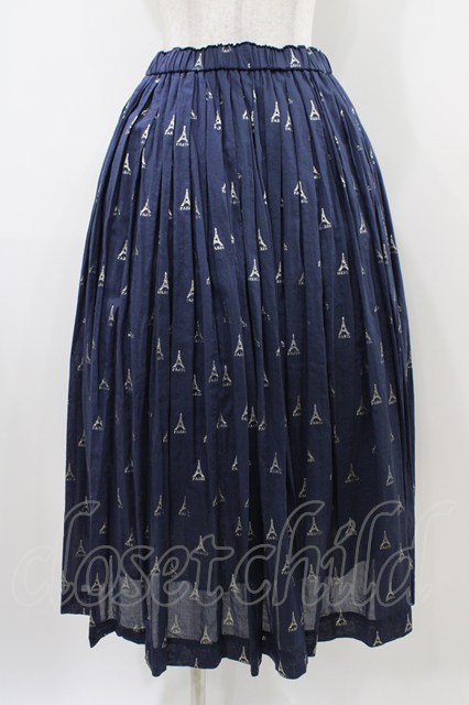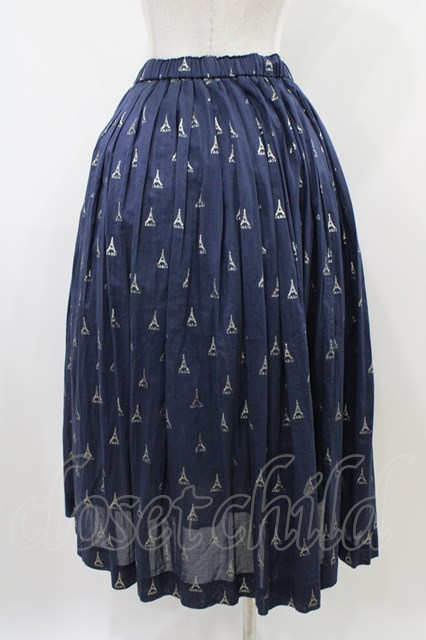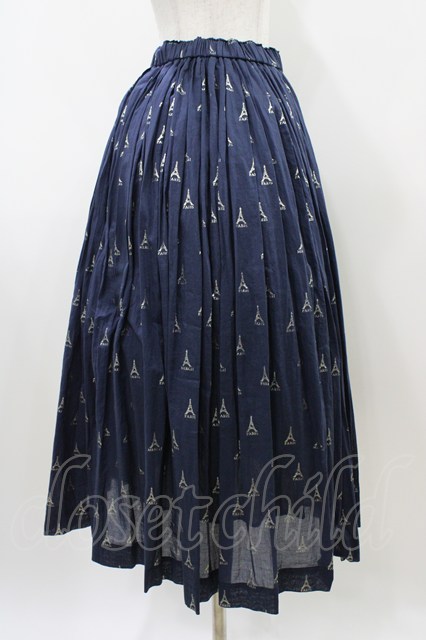 Jane Marple Dans Le Salon / LA TOUR EIFFELタックスカート ネイビー×ホワイトゴールド H-25-10-09-1034-JM-SK-KB-ZH