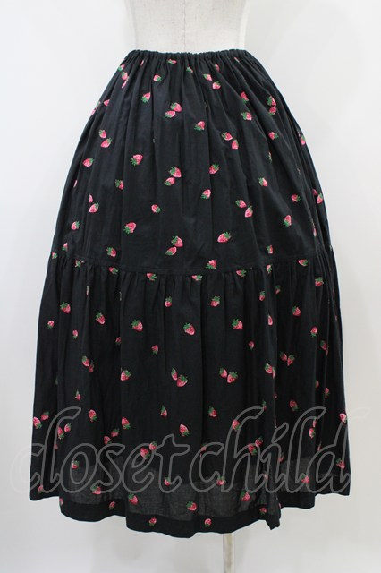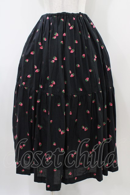 Jane Marple / Very berries embroideryスカート ブラック H-25-10-09-1032-JM-SK-KB-ZH
