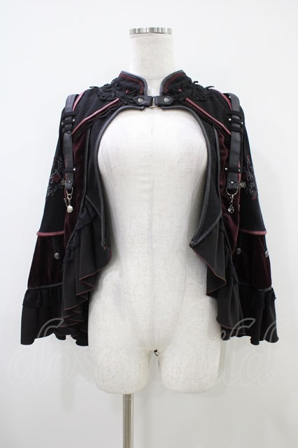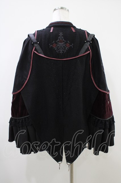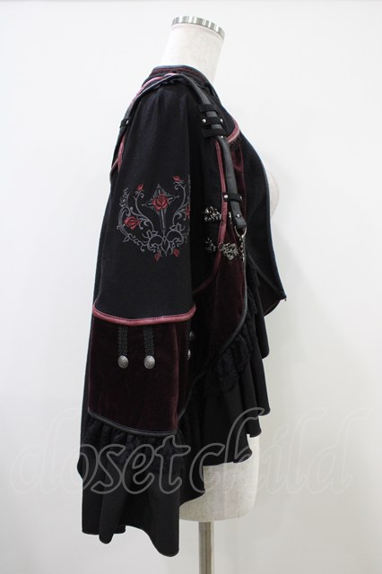 Ozz oneste / 薔薇刺繍マント 黒×赤 H-25-10-09-1019-OO-JA-KB-ZH [2100030000074264-H-25-10-09-1019-OO-JA-KB-ZH]