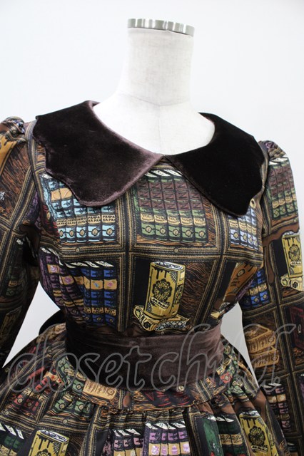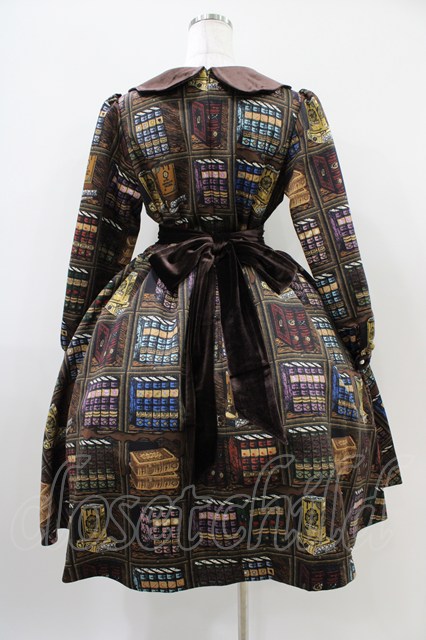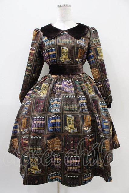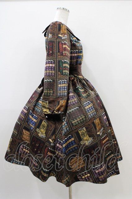 Q-pot. / Melty Bookshelfパフスリーブドレス M ブラウン H-25-10-09-1026-QP-OP-KB-ZH