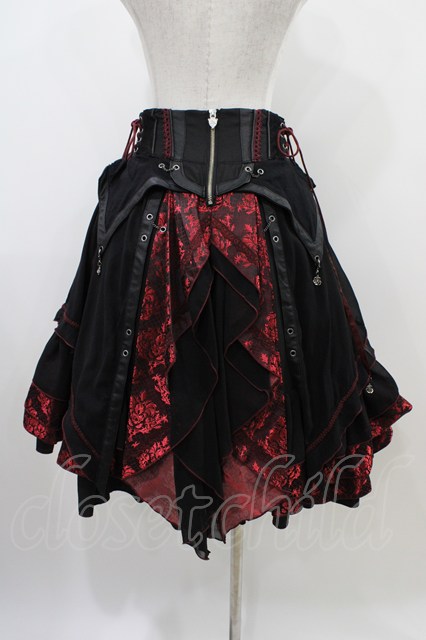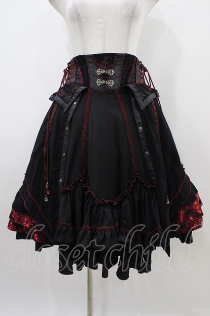 Ozz oneste / ジャガード切替フリルハイウエストスカート 黒×赤 H-25-10-09-1029-OO-SK-KB-ZH [2100030000074262-H-25-10-09-1029-OO-SK-KB-ZH]