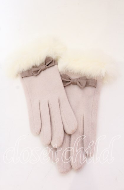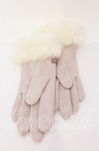 axes femme / プチリボンファー手袋 ピンク O-25-10-03-015-AX-ZA-OW-OS
