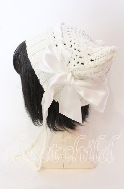 axes femme POETIQUE / サテンリボン猫耳ニット帽 アイボリー O-25-10-03-008-AX-AC-IG-OS