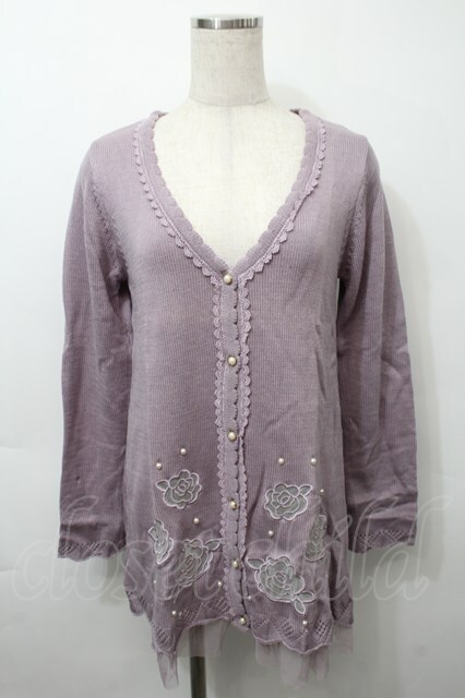 axes femme / 透かしバラロングカーディガン ラベンダー S-25-10-03-038-AX-TO-AS-ZS [2100020000032036-S-25-10-03-038-AX-TO-AS-ZS]