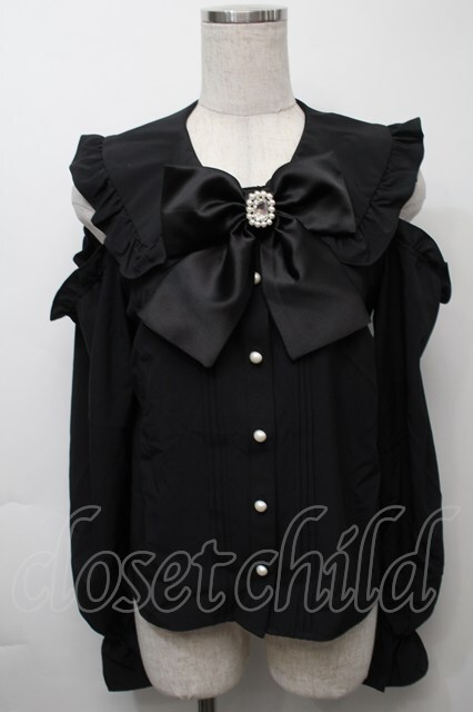 Ank Rouge / フリル襟ブラウス 黒 S-25-10-03-040-CA-BL-HR-ZS