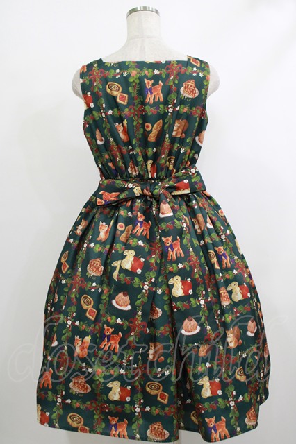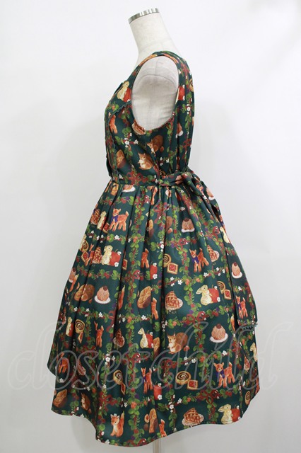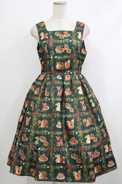 axes femme kawaii / 森のケーキ屋さん柄ジャンスカ M グリーン H-25-10-09-007-AX-OP-NS-ZH [2100030000054802-H-25-10-09-007-AX-OP-NS-ZH]