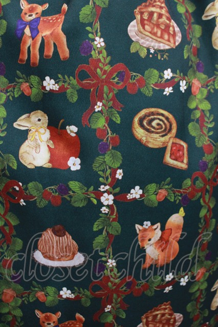 axes femme kawaii / 森のケーキ屋さん柄ジャンスカ M グリーン H-25-10-09-007-AX-OP-NS-ZH