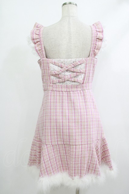 mellfy memory / Berry milk tweedワンピース M PINK H-25-10-09-039-LO-OP-NS-ZH