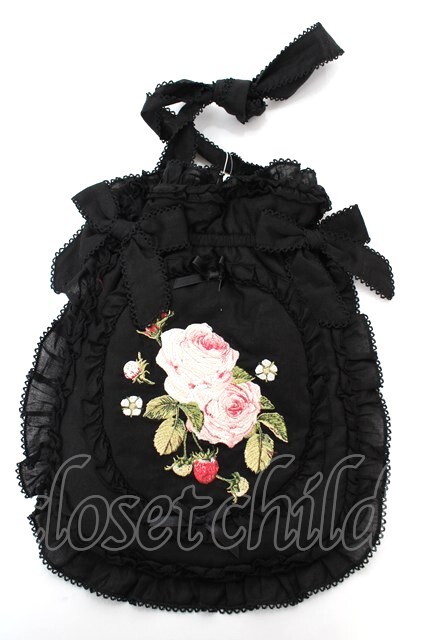 PINK HOUSE / Berry Rose刺繍アップリケ付きフリルポシェット 黒 Y-25-10-05-077-LO-BG-SZ-ZY [2100070000049393-Y-25-10-05-077-LO-BG-SZ-ZY]