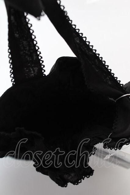 PINK HOUSE / Berry Rose刺繍アップリケ付きフリルポシェット 黒 Y-25-10-05-077-LO-BG-SZ-ZY