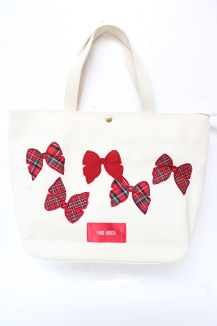 PINK HOUSE / リボンアップリケ トート オフ白 Y-25-10-05-094-LO-BG-SZ-ZY [2100070000049258-Y-25-10-05-094-LO-BG-SZ-ZY]
