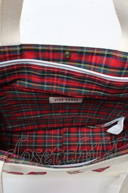 PINK HOUSE / リボンアップリケ トート オフ白 Y-25-10-05-094-LO-BG-SZ-ZY