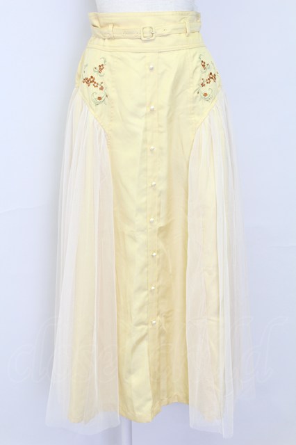 axes femme / サイドチュールロングスカート イエロー T-25-10-08-037-AX-SK-SA-ZT