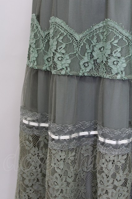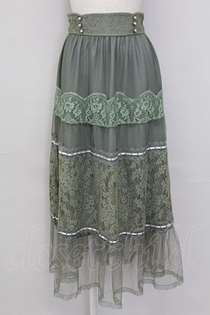 axes femme / チュールレースティアードスカート M グリーン T-25-10-08-038-AX-SK-SA-ZT