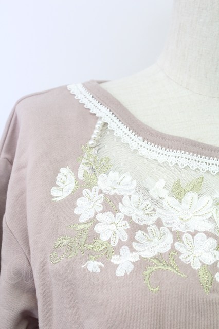 axes femme / フラワー刺繍裏毛トレーナー M ピンク T-25-10-08-019-AX-TO-SA-ZT