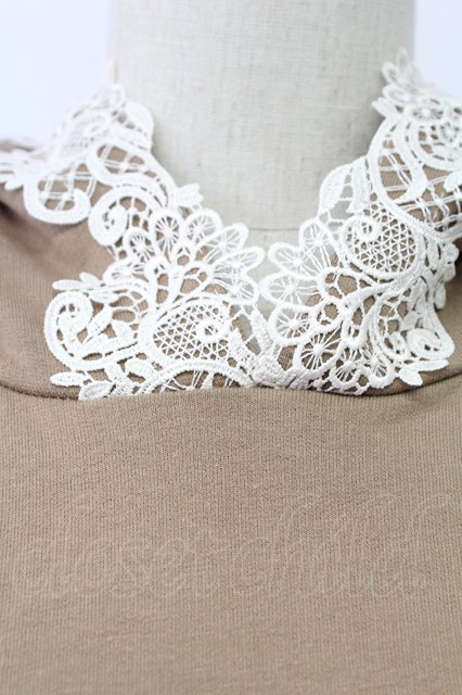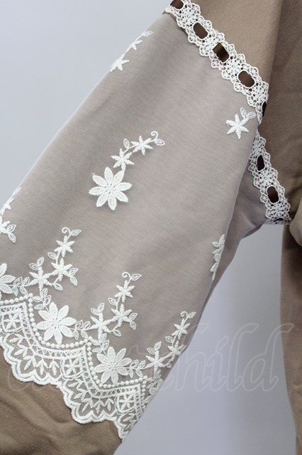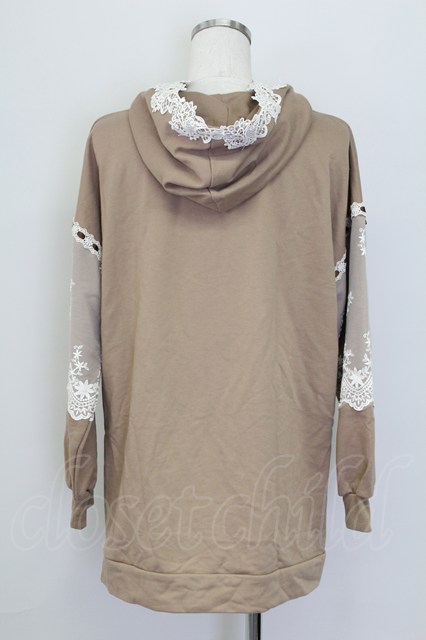 axes femme / 袖レース重ねパーカープルオーバー M モカ T-25-10-08-020-AX-TO-SA-ZT