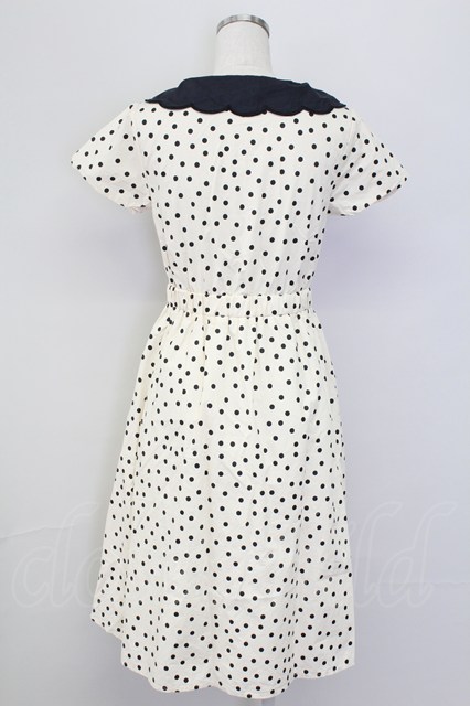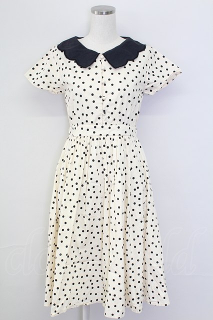 merry jenny / ドットスカラップワンピース アイボリーX黒 T-25-10-08-031-LO-OP-SA-ZT