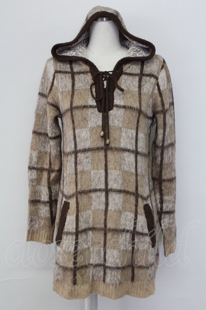 axes femme / チェックJQニットチュニ ブラウン T-25-10-08-032-AX-OP-SA-ZT [2100060000037684-T-25-10-08-032-AX-OP-SA-ZT]