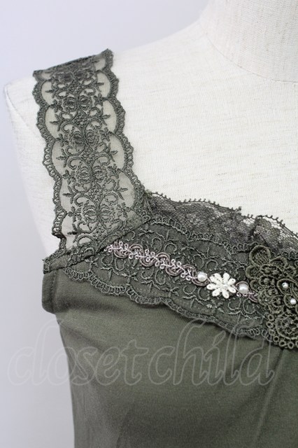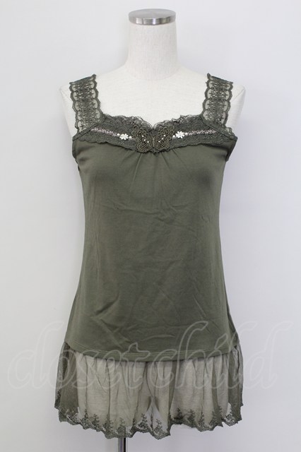 axes femme / 蝶々モチーフ付きロングタンク M カーキ T-25-10-08-013-AX-TO-SA-ZT