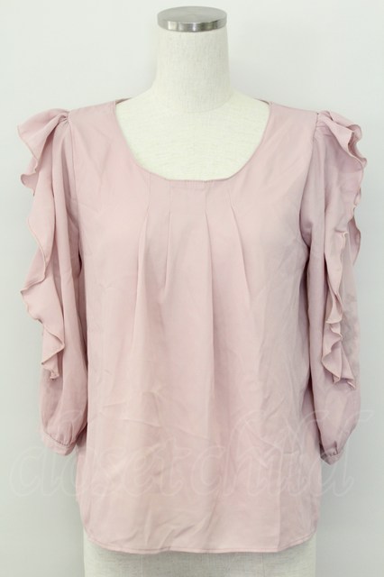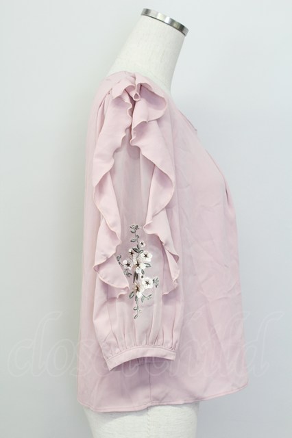 axes femme / 袖フラワー刺繍ブラウス ピンク T-25-10-08-016-AX-BL-SA-ZT [2100060000037698-T-25-10-08-016-AX-BL-SA-ZT]