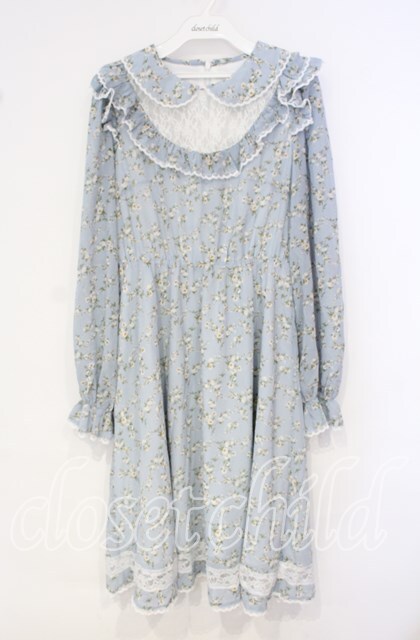 Honey Cinnamon / レース切替花柄ワンピース F ブルー O-25-10-04-050-LO-OP-OW-OS