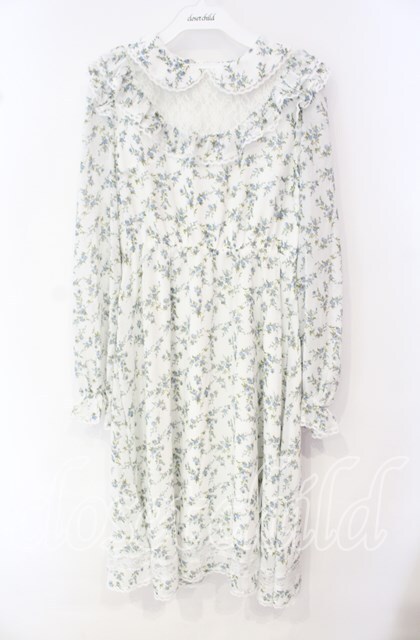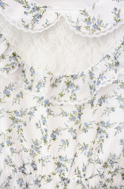 Honey Cinnamon / レース切替花柄ワンピース F シロ×アオ O-25-10-04-048-LO-OP-OW-OS