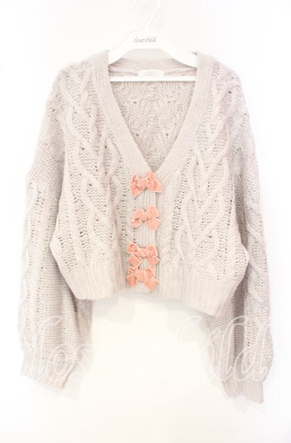 DearMyLove / ベロアリボンカーディガン L〜LL アイボリー O-25-10-04-052-EL-TO-OW-OS