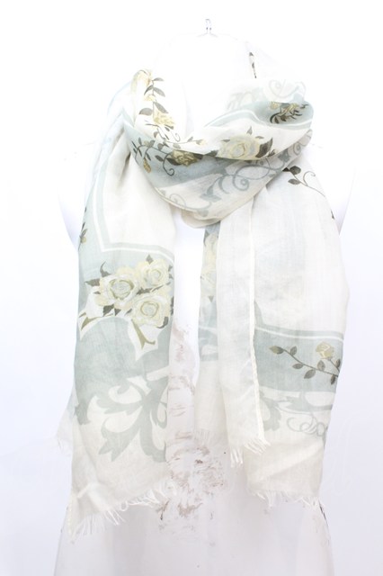 axes femme / ブーケ柄ストール 70×180cm 生成り×グリーン O-25-10-04-1020-AX-ZA-IG-OS [2100080000060256-O-25-10-04-1020-AX-ZA-IG-OS]