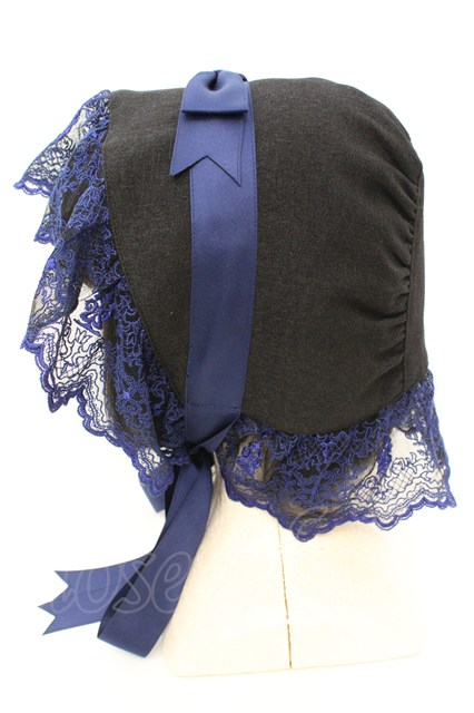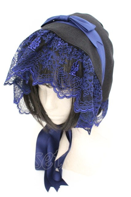 Moi-meme-Moitie / 燭台エンブレムボンネット ブラック×ブルー O-25-10-04-1008-MO-AC-OW-OS