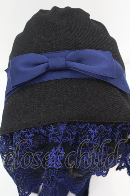 Moi-meme-Moitie / 燭台エンブレムボンネット ブラック×ブルー O-25-10-04-1008-MO-AC-OW-OS [2100080000060382-O-25-10-04-1008-MO-AC-OW-OS]