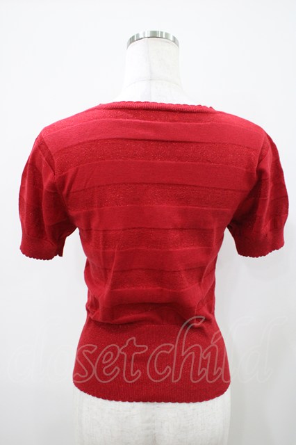 Emily Temple cute / ラメボーダー半袖カーデ レッド H-25-10-11-029-ET-TO-KB-ZH [2100030000074458-H-25-10-11-029-ET-TO-KB-ZH]