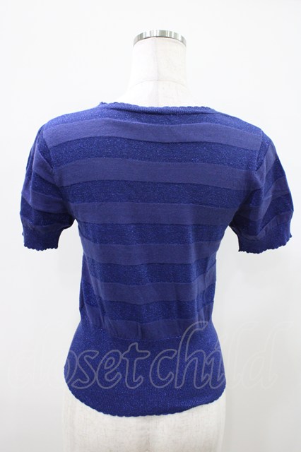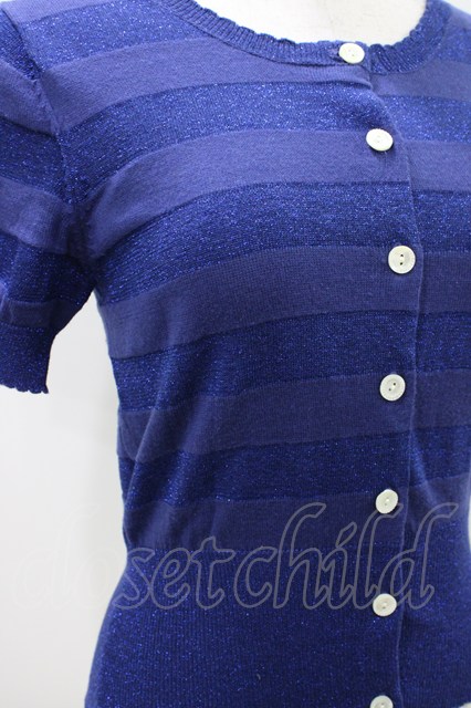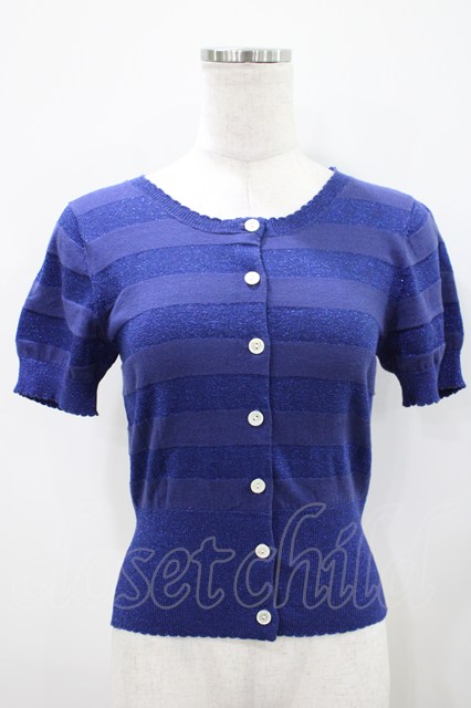 Emily Temple cute / ラメボーダー半袖カーデ ブルー H-25-10-11-030-ET-TO-KB-ZH [2100030000074457-H-25-10-11-030-ET-TO-KB-ZH]