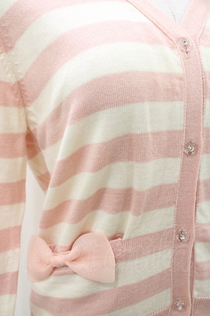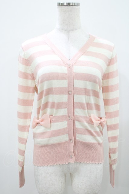 Emily Temple cute / ボーダーリボンカーディガン ピンク H-25-10-11-019-ET-TO-KB-ZH [2100030000074451-H-25-10-11-019-ET-TO-KB-ZH]