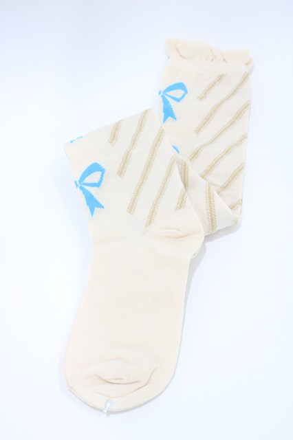 Emily Temple cute / リボン&ななめストライプオーバーニーソックス ブルー×ゴールド H-25-10-11-038-ET-ZA-KB-ZH [2100030000074492-H-25-10-11-038-ET-ZA-KB-ZH]