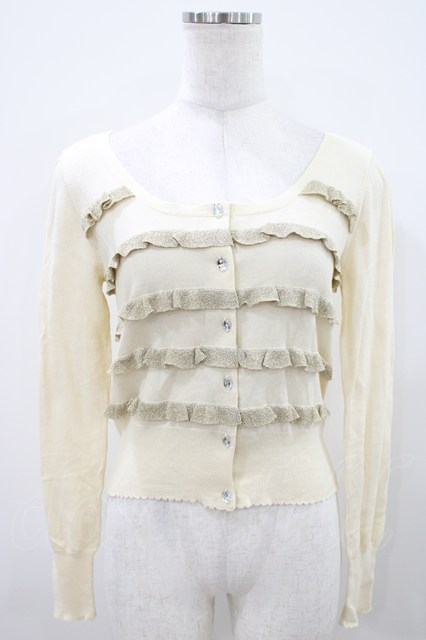 Emily Temple cute / ボーダーフリルカーディガン オフ×ゴールド H-25-10-11-014-ET-TO-KB-ZH [2100030000074456-H-25-10-11-014-ET-TO-KB-ZH]