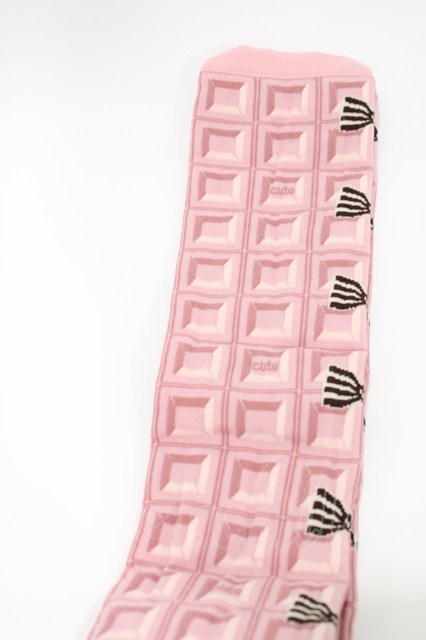 Emily Temple cute / チョコ&リボンオーバーニーソックス ピンク H-25-10-11-039-ET-ZA-KB-ZH