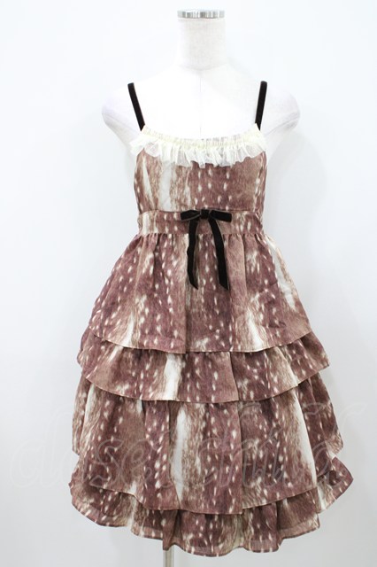 Emily Temple cute / バンビプリントティアードノースリーブワンピース チャ H-25-10-11-036-ET-OP-KB-ZH [2100030000074433-H-25-10-11-036-ET-OP-KB-ZH]
