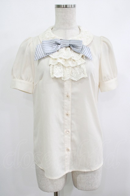 Secret Honey / リボンブラウス Free 生成り/サックス H-25-10-10-037-CA-BL-NS-ZH
