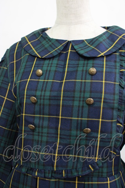 FLC / MINA*タータンチェックワンピース LL ネイビー H-25-10-10-014-LO-OP-NS-ZH