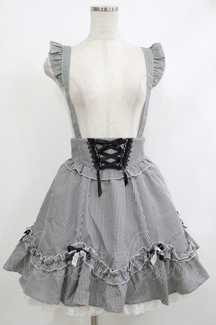 Secret Honey / 裾フリルリボンレースアップスカート Free ブラックギンガム H-25-10-10-027-CA-SK-NS-ZH