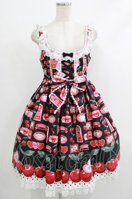 Angelic Pretty / Cherry Jam Labelジャンパースカート Free ブラック H-25-10-10-008-AP-OP-NS-ZH