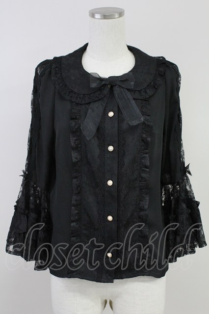 axes femme kawaii / レーシー姫袖ブラウス 黒 T-25-10-05-006-AX-BL-SA-ZT [2100060000040753-T-25-10-05-006-AX-BL-SA-ZT]