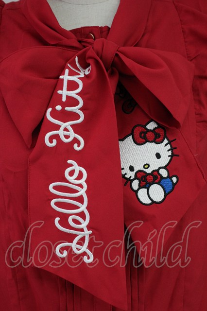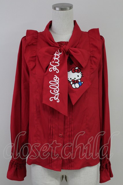 axes femme / ハローキティ刺繍ブラウス 赤 T-25-10-05-004-AX-BL-SA-ZT