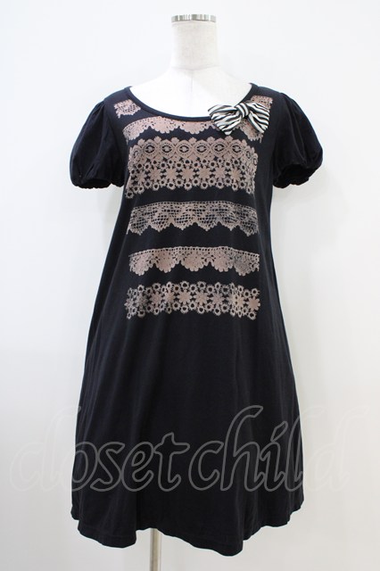 Emily Temple cute / レースプリントカットソーワンピース クロ H-25-10-12-032-ET-OP-KB-ZH [2100030000074530-H-25-10-12-032-ET-OP-KB-ZH]