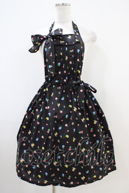 Emily Temple cute / 小花&フルーツエプロンワンピース クロ H-25-10-12-023-ET-OP-KB-ZH