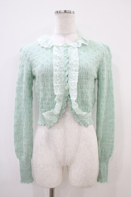 Emily Temple cute / 透かし編みモヘヤニットボレロカーディガン ミント H-25-10-12-048-ET-TO-KB-ZH [2100030000074548-H-25-10-12-048-ET-TO-KB-ZH]