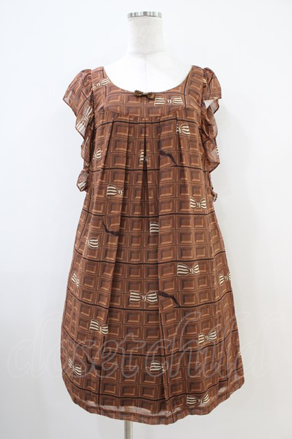 Emily Temple cute / チョコ&リボンフリルノースリーブワンピース チョコ H-25-10-12-024-ET-OP-KB-ZH [2100030000074537-H-25-10-12-024-ET-OP-KB-ZH]