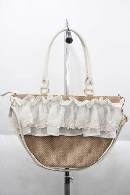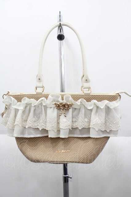 axes femme / レースフリルかごトート ベージュX白 I-25-10-04-001-AX-BG-SA-ZI