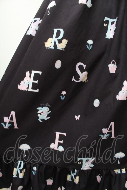 Ms LUTRA / ラビットアルファベット柄ジャンパースカート 黒 S-26-01-23-036-LO-OP-SA-ZS