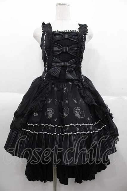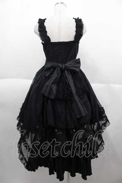 FRILL / リボンxプリントフィッシュテールジャンパースカート 黒 I-25-10-04-086-HN-OP-HR-ZI